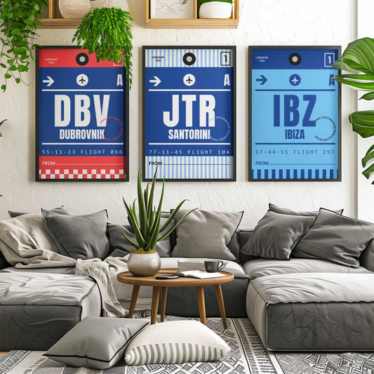 Summer Holiday Travel Prints Set Of 3 - Dubrovnik Santorini Ibiza