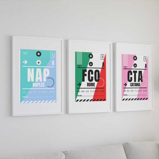 Italian Travel Prints - Set Of 3 - Naples, Rome, Catania