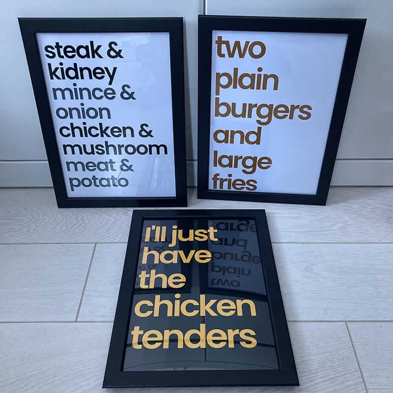 Our prints come in standard universal sizes, A5, A4 & A3, and there's a huge range of frames available online and in stores. Good places to get frame are IKEA, Dunelm, Amazon, The Range, John Lewis and more.