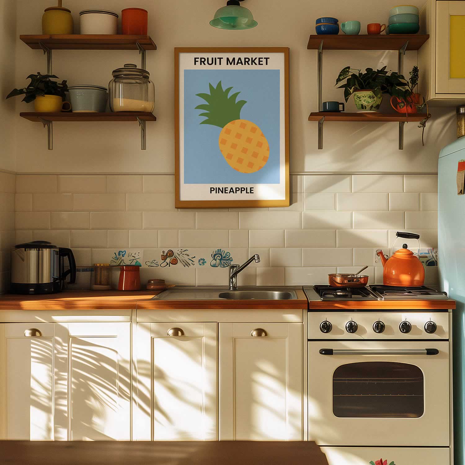The Fruit Market Pineapple print adds some tropical fruit colour to your wall when you're looking for bright vibrance to your space.