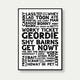 Our big Geordie slang quote design from the Veranito Geordie Prints series that takes Newcastle slang and puts it right up on the walls in your home.