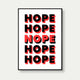 The design comes with the repeat typography style stating hope, with the nope wording in the middle in a contrasting colour. A mix of red and black print make this typography print really stand out and get your message across on your wall.