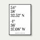 Add some local style to your wall with the Newcastle Map Coordinates with large classy typography that will elevate any wall. The large serif typography adds some luxe style to your room, and reminds you where you are.
