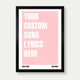 Our personalised song lyrics print is perfect for you to showcase your favourite song lyrics in your home. Whether it's some meaningful lyrics from your favourite song or group, or it's epic lyrics from your band, This is the perfect way to show them off.