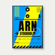 This travel poster comes in bright and bold yellow and blue that will make your space stand out. The ARN airport code and other details are in deep black that's easy to read.
